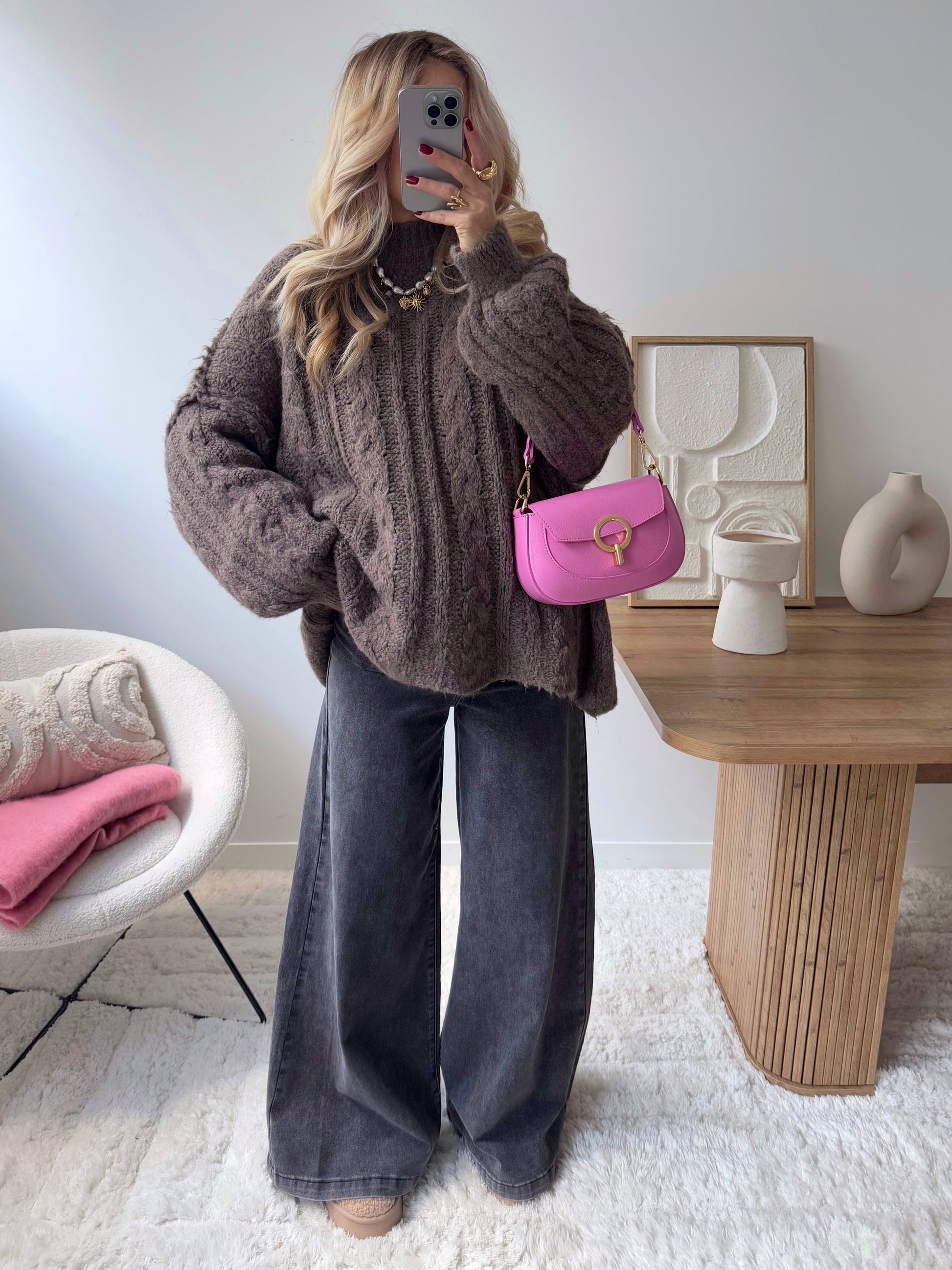 Adopt a relaxed and cozy look with the CASTELLO oversized cable knit sweater, a must-have this season. Its loose fit and dropped shoulder seams offer optimal comfort while adding a modern and fluid touch to your silhouette. The funnel neck keeps you warm while adding an elegant and refined style. The ribbed finishes at the ends ensure a perfect fit. Crafted from a soft knit, this sweater wraps you in comfort all day long, ideal for a cozy and trendy look on cool days.